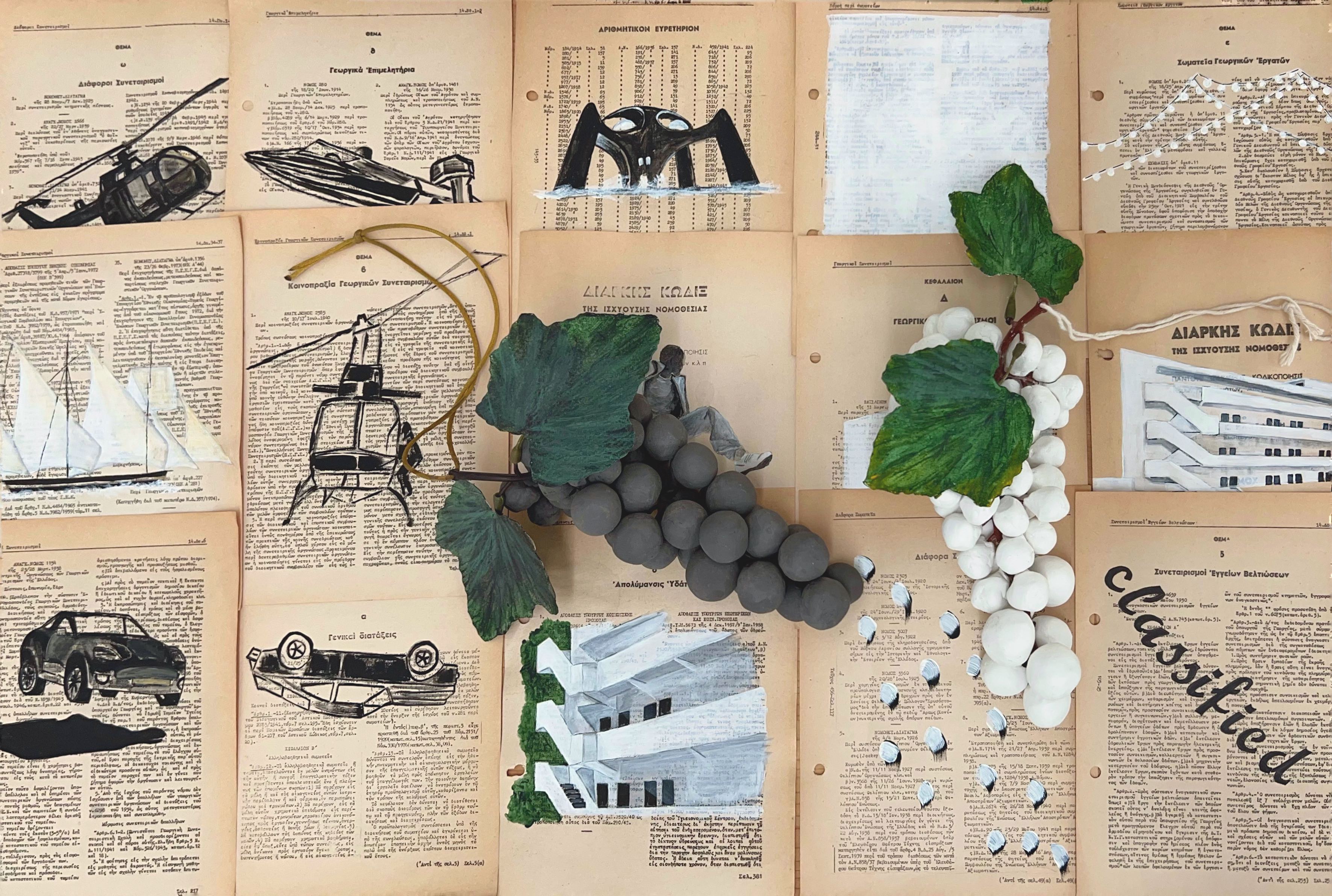 A story within another story, placed in a deceptive setting; that’s what the latest exhibition by Dimitra Vamiali with the enigmatic title Pinot Noir is. With a series of works that act as plot devices of a non-linear narrative with two perspectives, the artist constructs a mise-en-scène – a staged environment – through which she “composes” a noir tale. Based on a plethora of references and findings from literature, film, art history and even reality, it suggests a story about a writer writing a hypothetical scenario, in which a former spy retreats to an imaginary vineyard to isolate himself and change his life. The choice of the hero-spy is not at all coincidental in this manipulative era of constant surveillance and collection of personal information through the internet and technology.